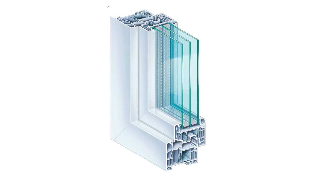 • 在76雙密封門窗系統基礎上設計,整體PVC-U框結構Uf值可低至1.3W/(M2K)。扇四周是三道密封結構,采用高品質EPDM膠條,實現氣密水密性能。